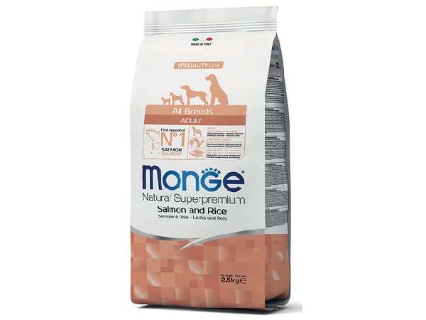 מונג’ לכלב בוגר סלמון ואורז 2.5 קילוגרם