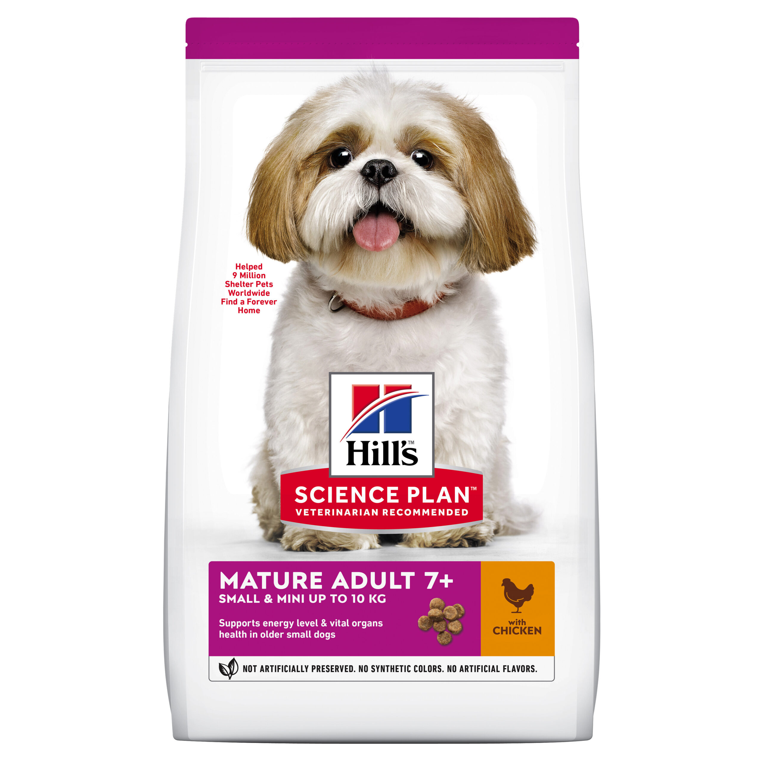 מזון Hill’s Science Plan לכלב מבוגר מגזע קטן 7+ (עם עוף) מכיל תזונה מותאמת המסייעת להזדקנות בחן של כלבים מגזע קטן וזעיר. מיוצר במיוחד עם כופתיות מוקטנות, מכיל תערובת סינרגטית של נוטריינטים התורמים לאנרגיה ולחיוניות. יתרונות עיקריים: – נוסחה מאוזנת של מינרלים לתמיכה בבריאות הלב, הכליות ושלפוחית השתן – תערובת מזינה של אומגה-6 וויטמין E לתמיכה בעור בריא ופרווה מפוארת – מרכיבים קלים לעיכול בריא – מכיל תערובת מיוחדת של נוגדי חמצון לכלבים מגזע קטן וזעיר לתמיכה במערכת החיסון לכל אורך החיים מאפיינים: – מעניק מינרלים מאוזנים המסייעים בשמירה על בריאות הלב, הכליות ושלפוחית השתן בכלבים מבוגרים מגזע קטן, בעזרת כופתיות קטנות – מכיל מרכיבים קלים ועדינים במיוחד לעיכול לכלבים מבוגרים מגזע קטן וזעיר – משתמש בתערובת של נוגדי חמצון המיועדת במיוחד לתמיכה במערכת החיסון לכל אורך החיים של כלבים מבוגרים מגזע קטן וזעיר – מיוצר ממרכיבים איכותיים מומלץ עבור: כלבים מבוגרים בני 7+ השוקלים עד 10 ק”ג בבגרותם רכיבים: High quality protein and thoughtfully sourced ingredients. with Chicken: chicken (8%) and turkey meal (total poultry 13%), wheat, brewers’ rice, brown rice, maize, animal fat, digest, barley, oats, dried beet pulp, soybean oil, flaxseed, minerals, dried tomato pomace, dried citrus pulp, dried grape pomace, spinach powder, vitamins, trace elements and beta-carotene. With a natural antioxidant (mixed tocopherols).
